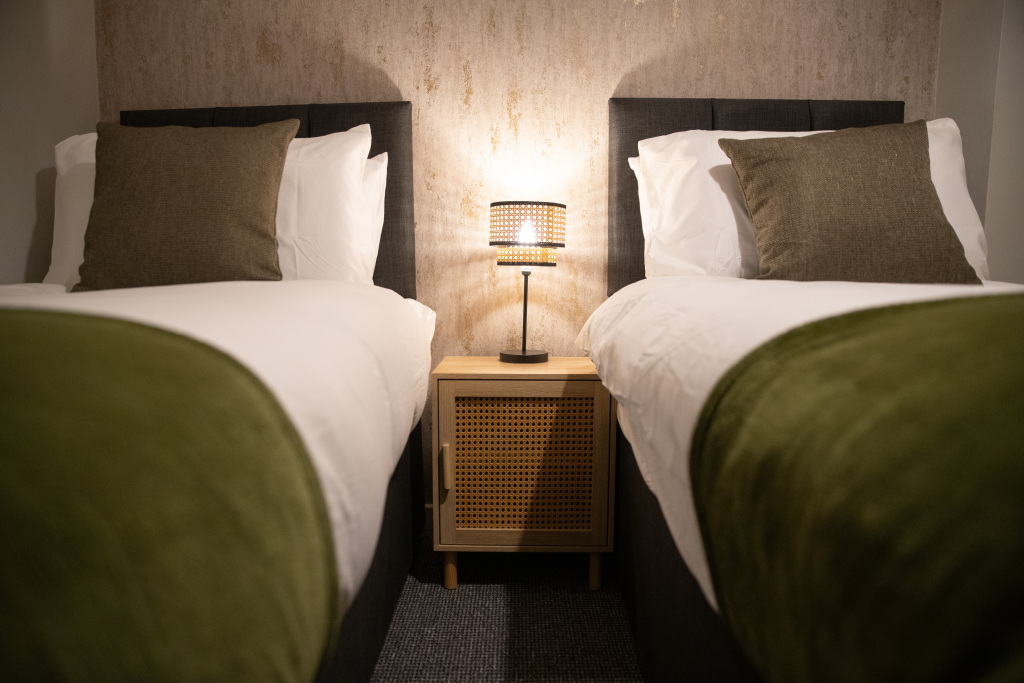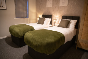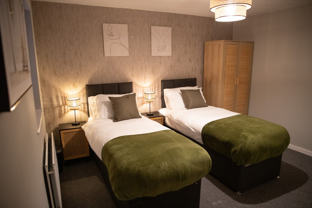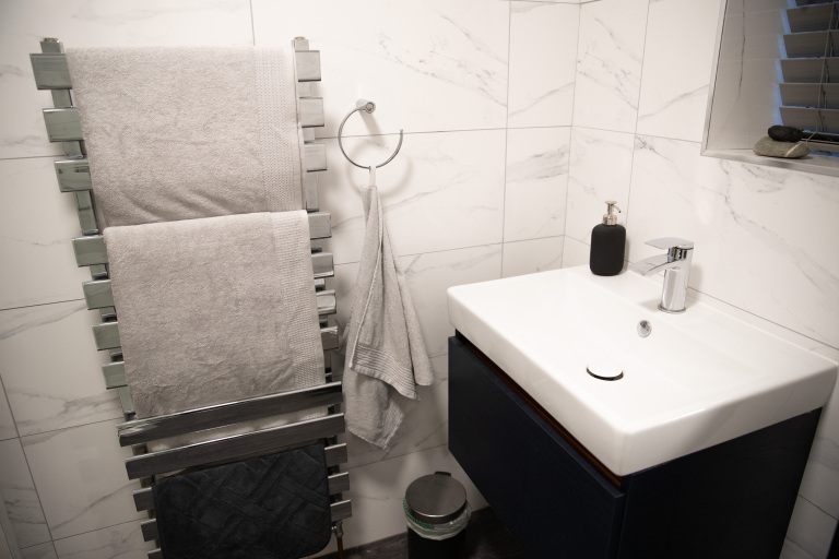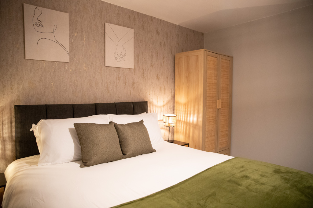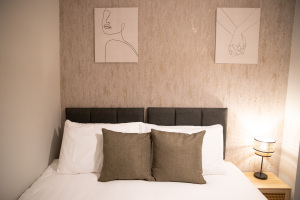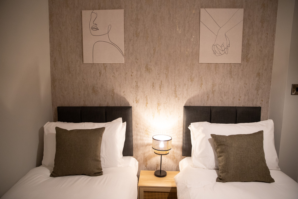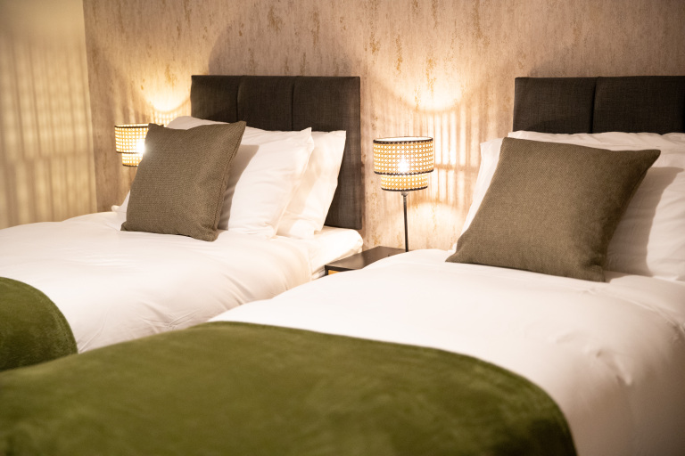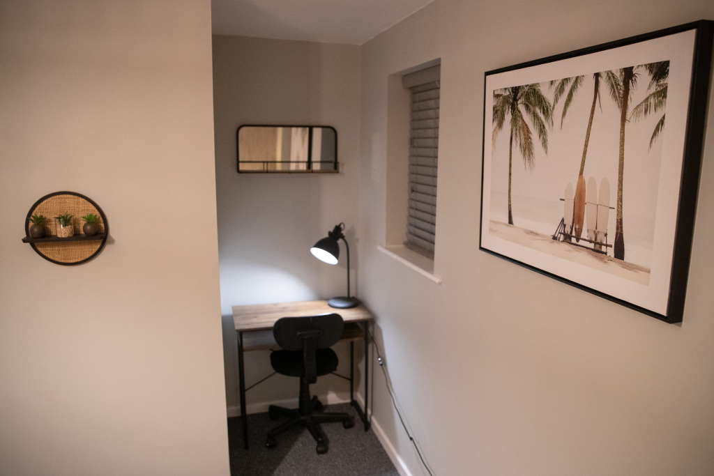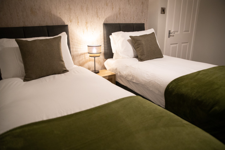 The beautiful space has 2 double bedrooms, and the beds can be made up as either king beds or 2 single beds in each room depending on your requirements. The main bedroom also has a desk and chair.
