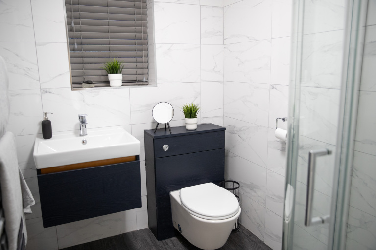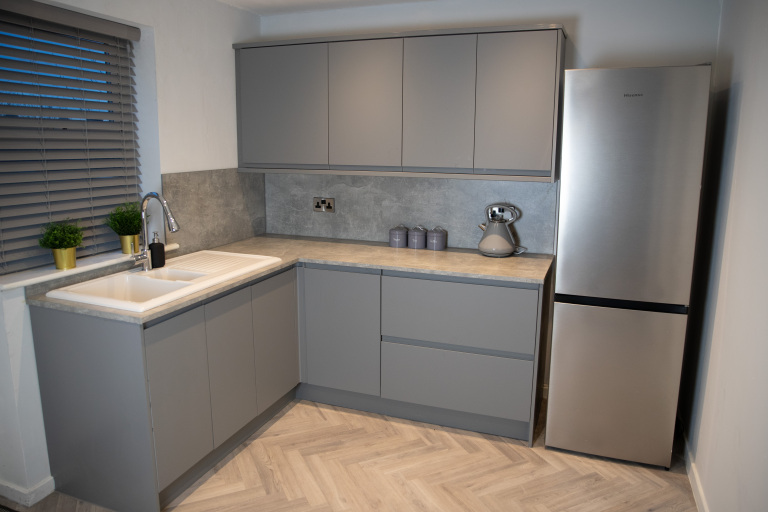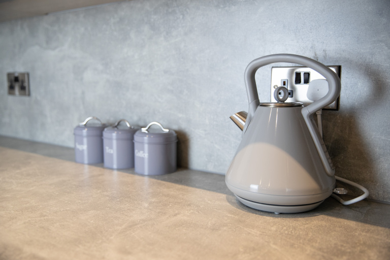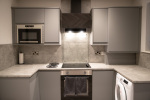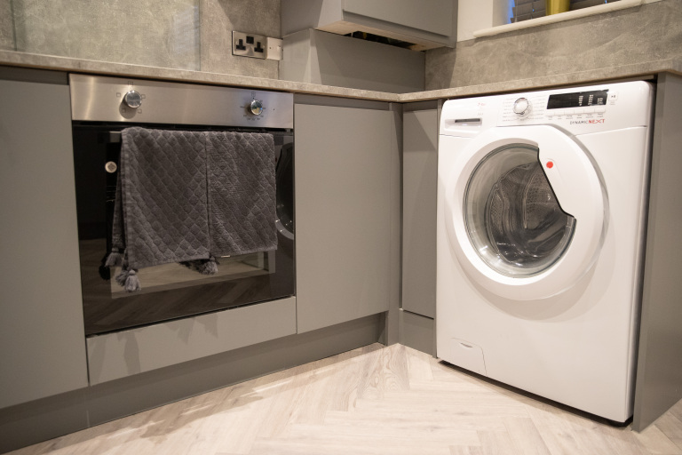 The kitchen is equipped with a washer / dryer, dishwasher, microwave, multifunction oven / hob, fridge freezer and kettle. There is also a dining table and chairs to accommodate 4 guests.